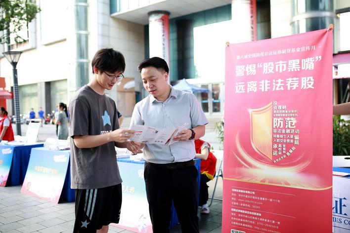 防非打非工作人员向市民普及防范非法金融活动知识。