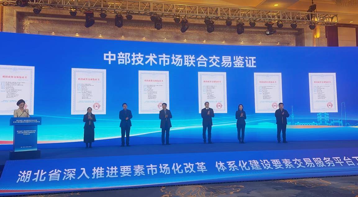 国家技术转移中部中心开展中部技术交易来拟合鉴证首发仪式。(湖北日报全媒记者 文俊 摄)