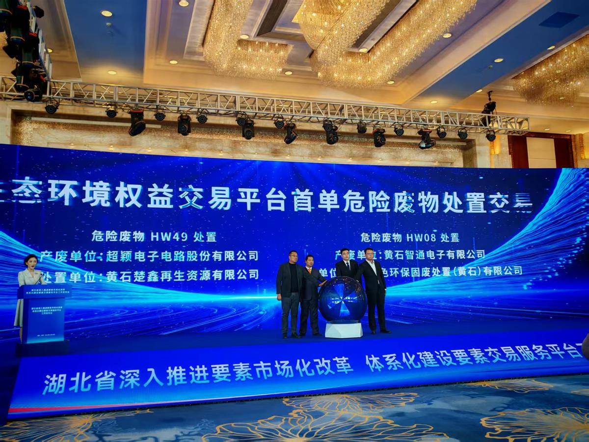 生态环境权益交易平台在发布会现场完成首单危险废物处置交易。(湖北日报全媒记者 戴文辉 摄)