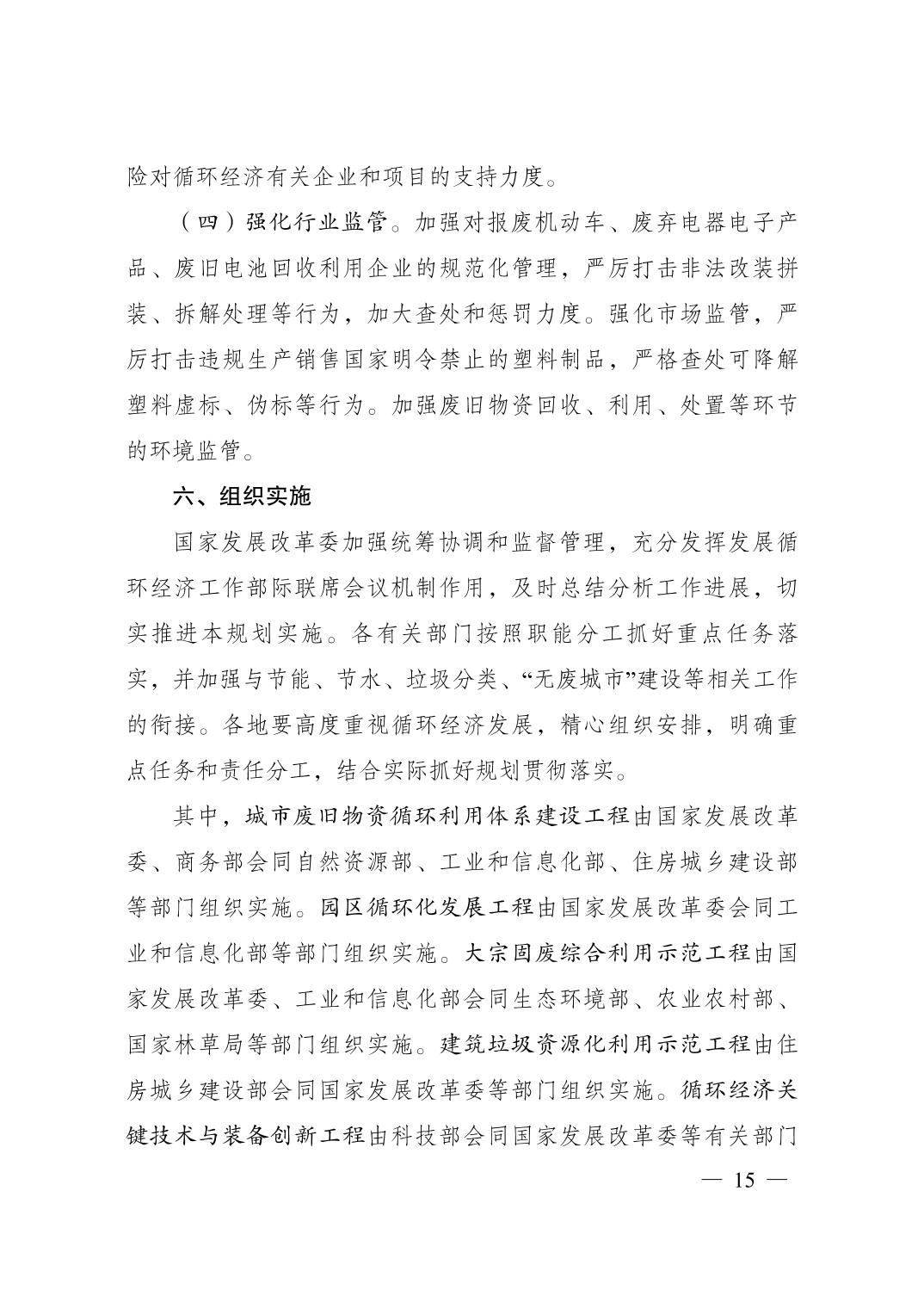 国家发展改革委关于印发 “十四五”循环经济发展规划的通知